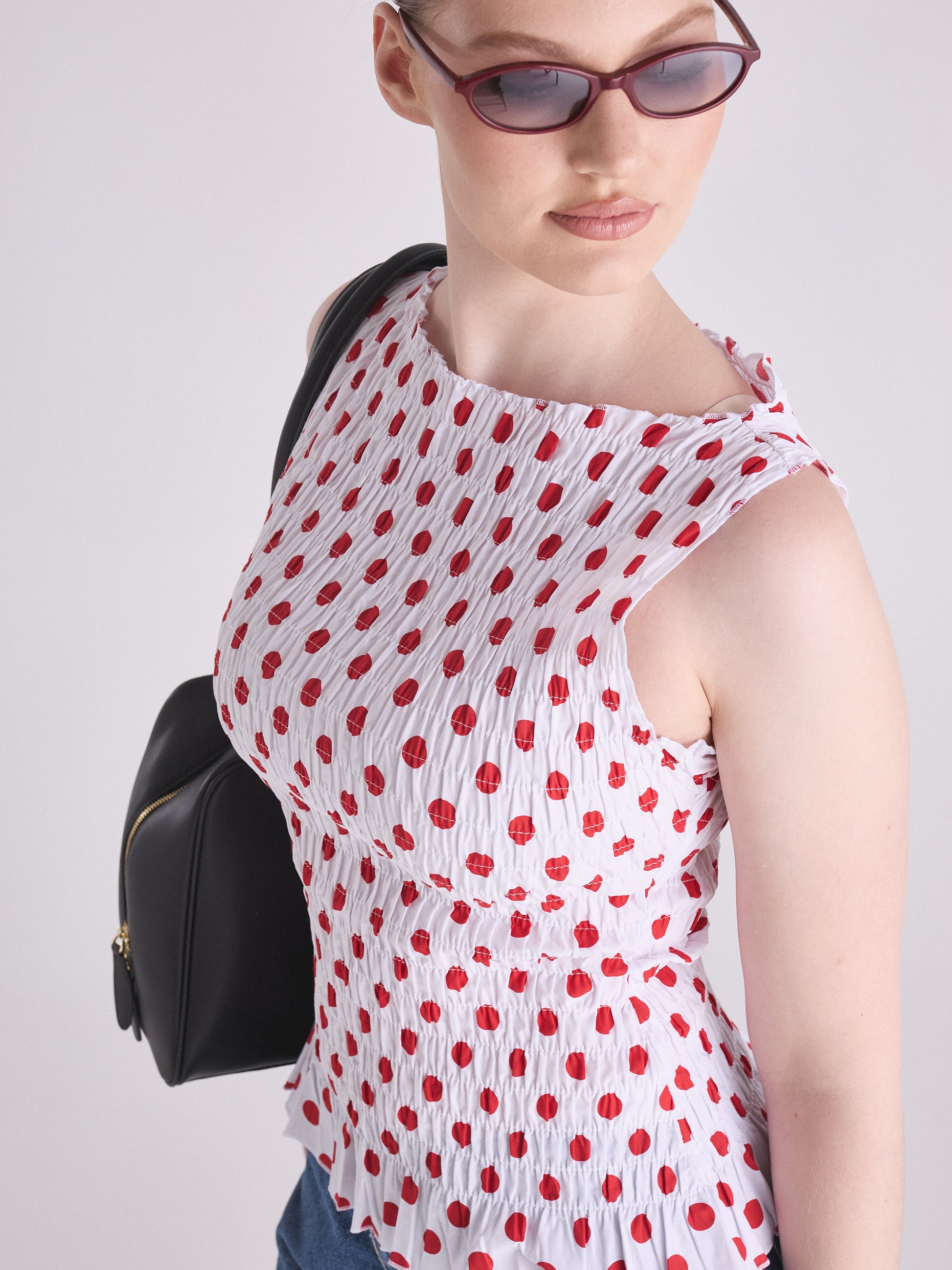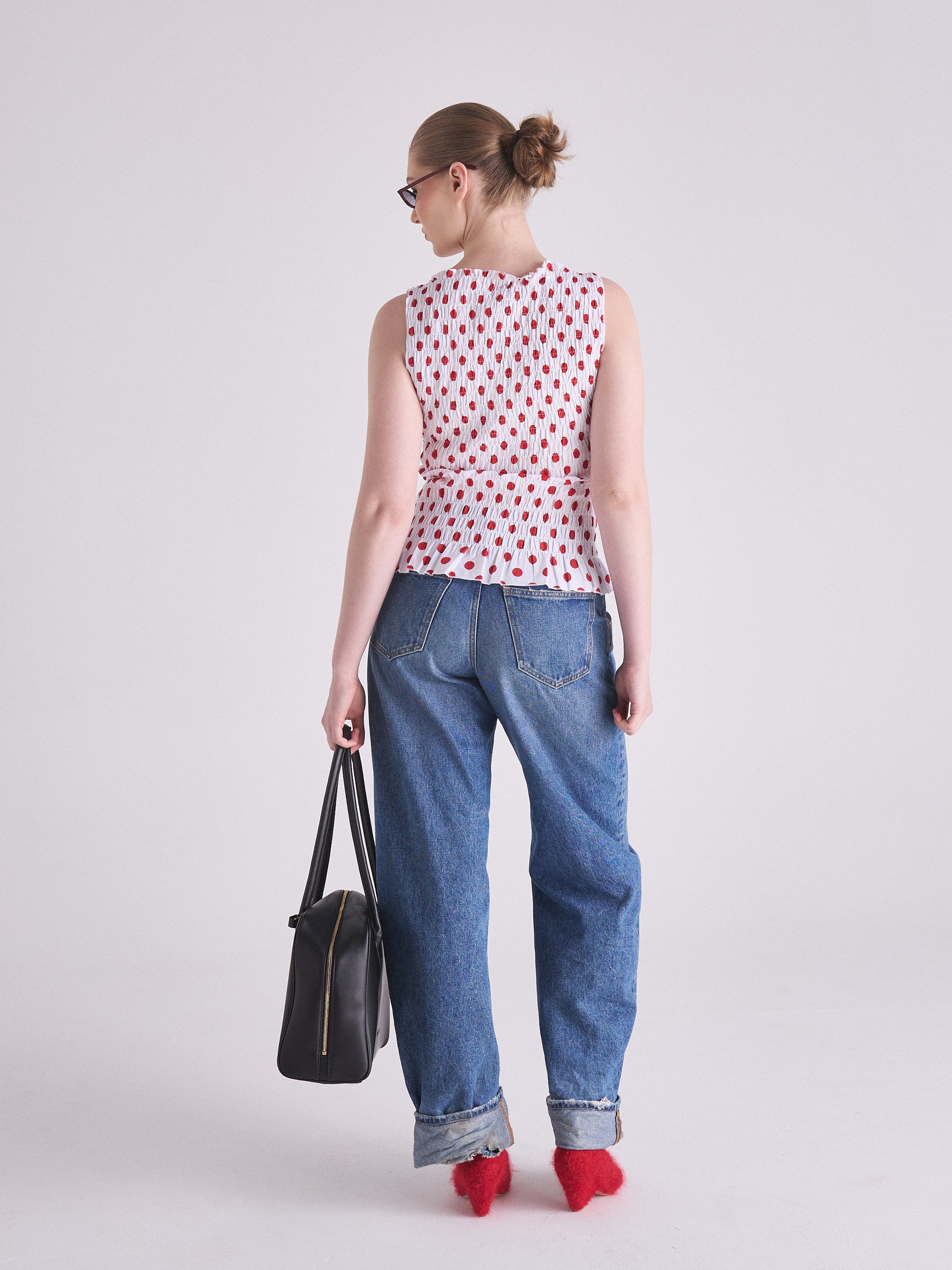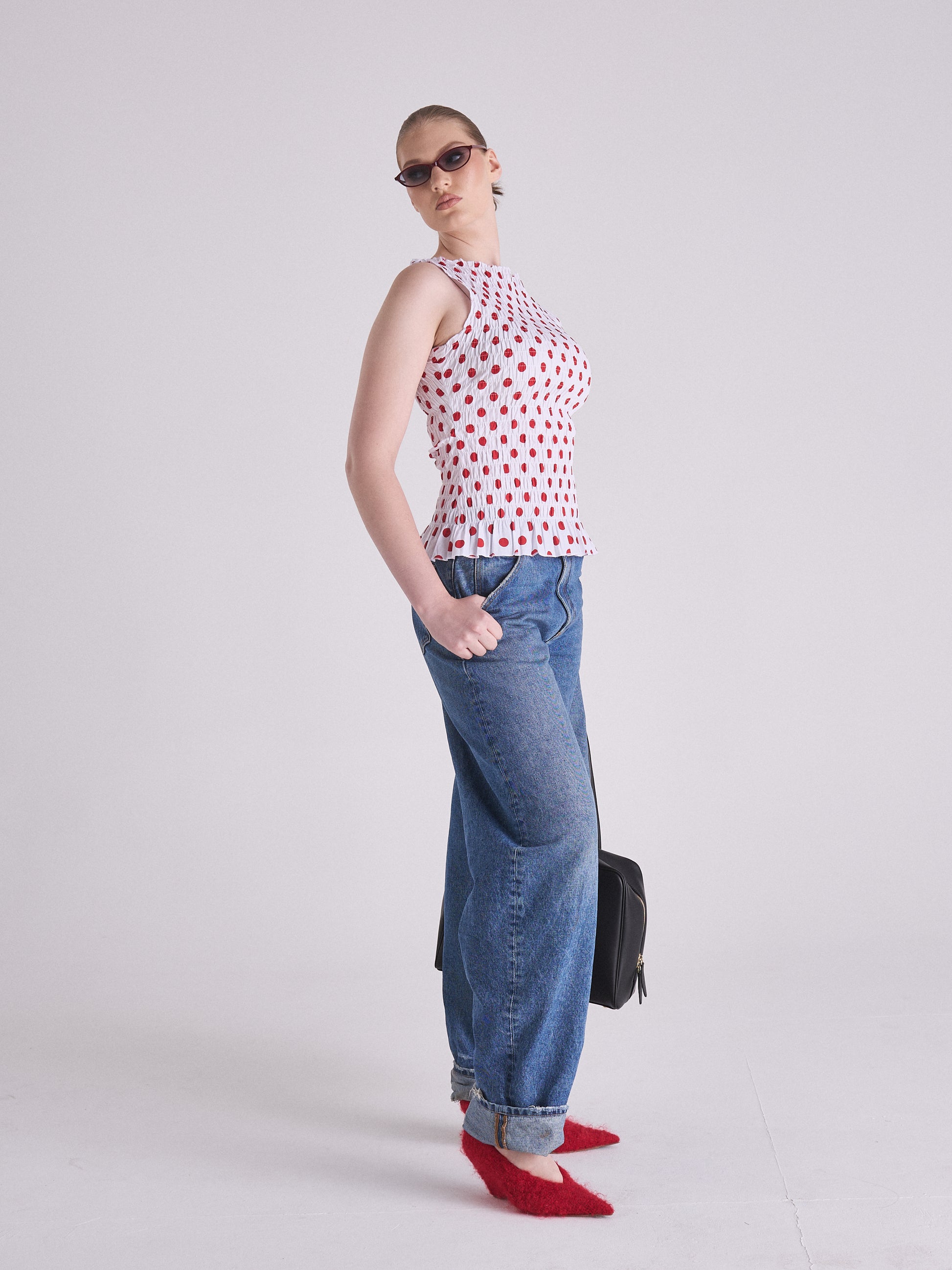 Office-approved, wine-bar ready. The Luna Tank – Chérie brings a edge to your everyday line-up with its crisp white base and cherry-red polka dots. The shirred bodice hugs in all the right places and relaxes with wear for a fit that feels made for you. Pair it with your favourite denim. 100% Cotton