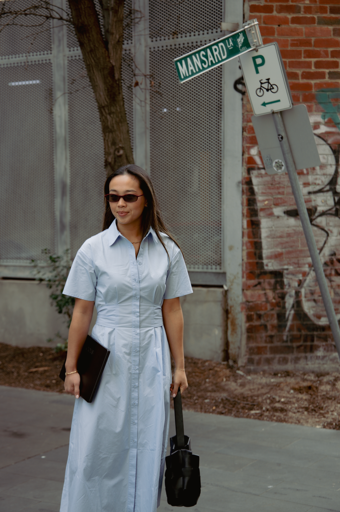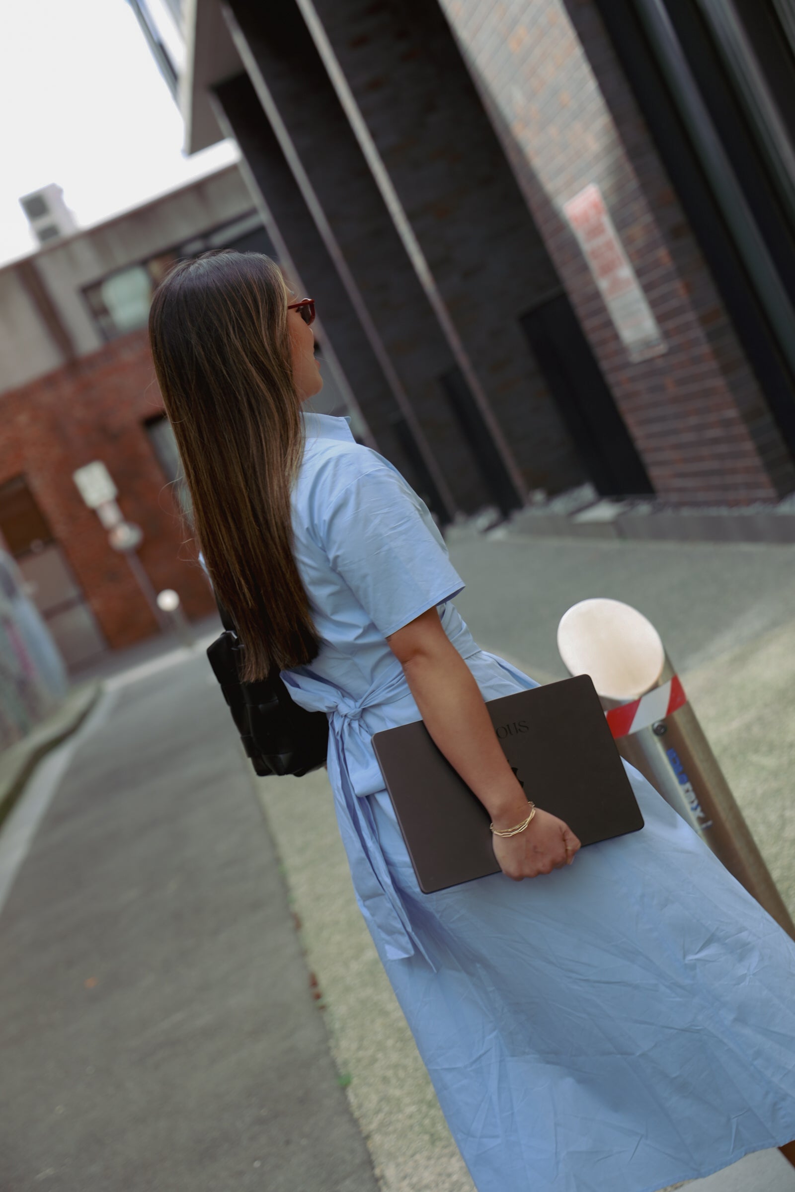 Your 9-to-5 just met its after-hours upgrade. The Vela Dress – Iris is everything you love about our Vela Shirts, now reimagined as your new favourite dress. Made from 100% cotton for a lightweight, breathable feel, it’s designed with a relaxed, structured silhouette and adjustable waist ties to cinch in when it’s time to clock off. Wear it loose for daytime or pulled in for wine-bar nights — because you look too good to go home.
