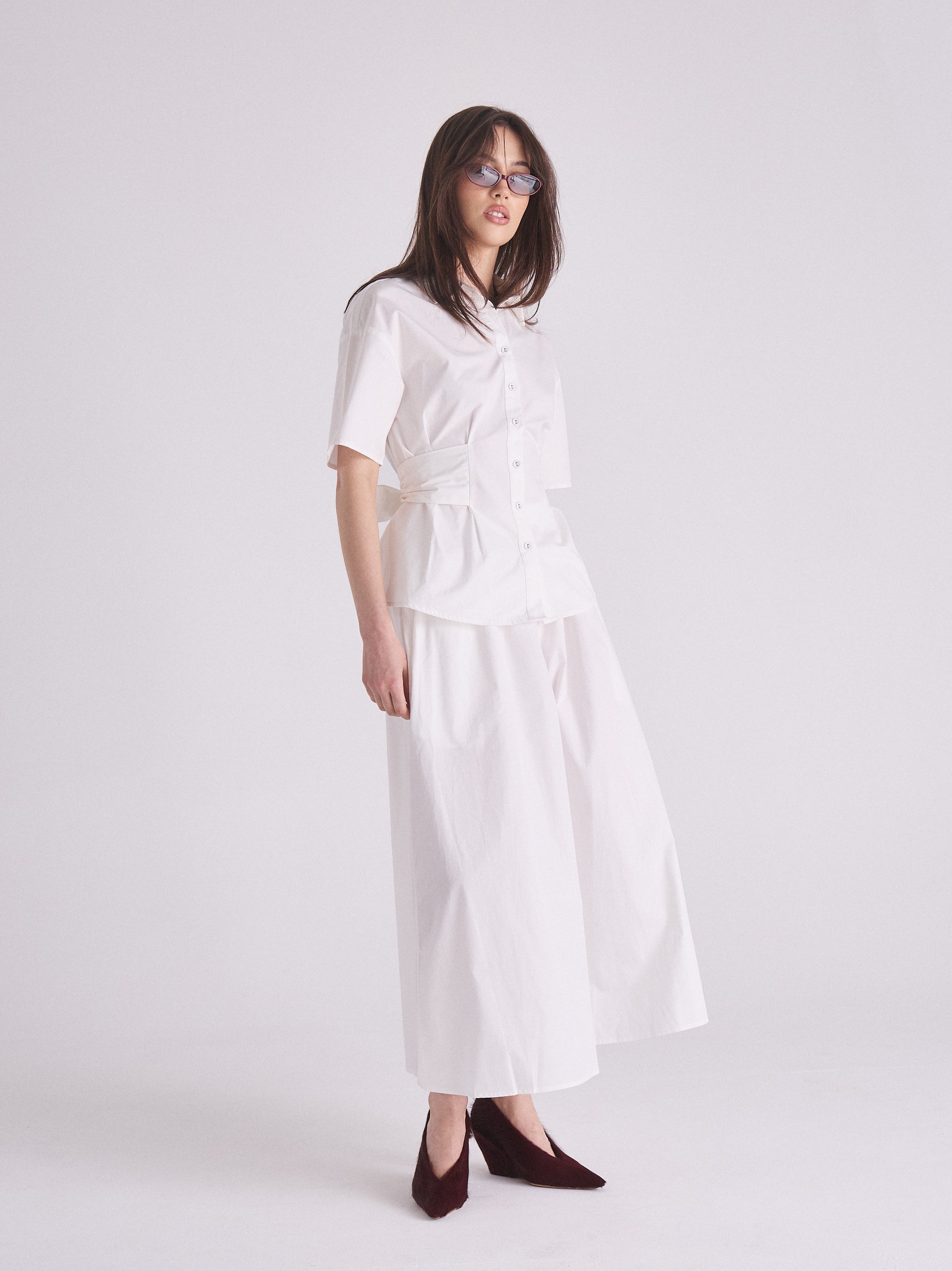 Your weekly lineup just found its new staple. The Vela Shirt – Ivory is made from 100% cotton for that soft, breathable feel that works year-round. Designed with a relaxed, structured silhouette and adjustable waist ties. This style is meant to sit slightly oversized through the shoulders for that relaxed fit. If you’re fuller-busted, we recommend sizing up.